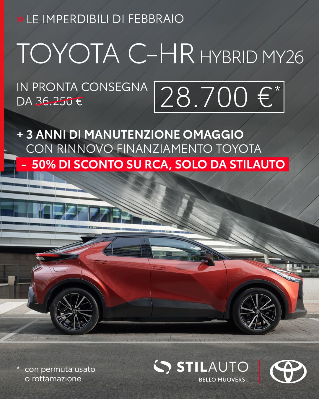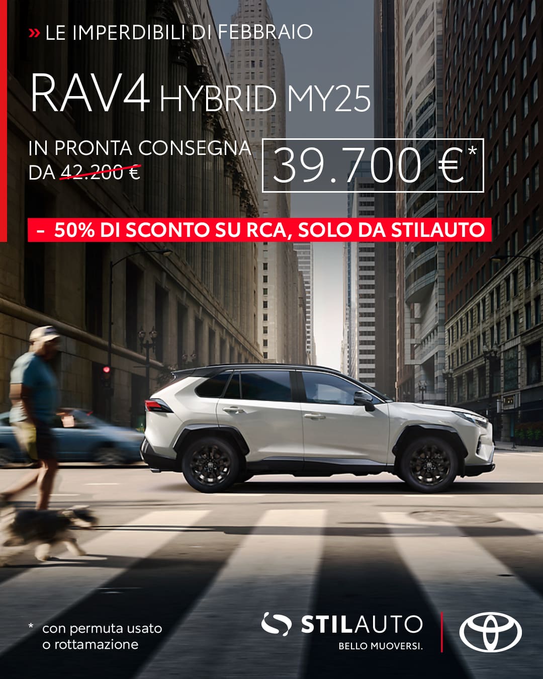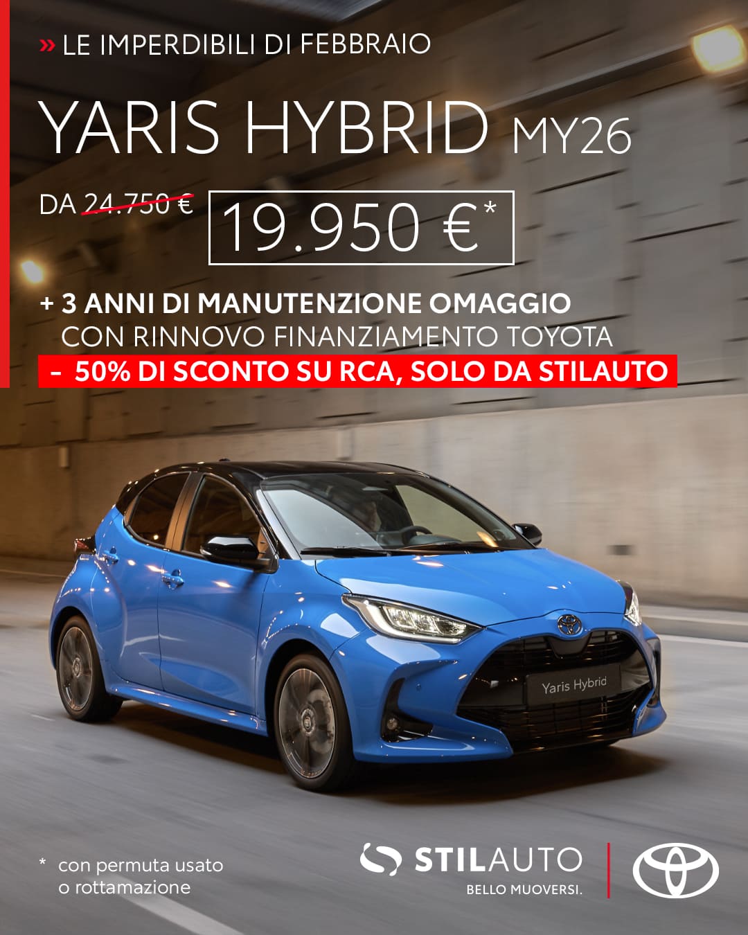 Solo il 14/15 e 21/22 febbraio, STILAUTO RADDOPPIA L'OFFERTA del mese e ti regala 1 ANNO DI RCA, sull'acquisto di una Toyota!