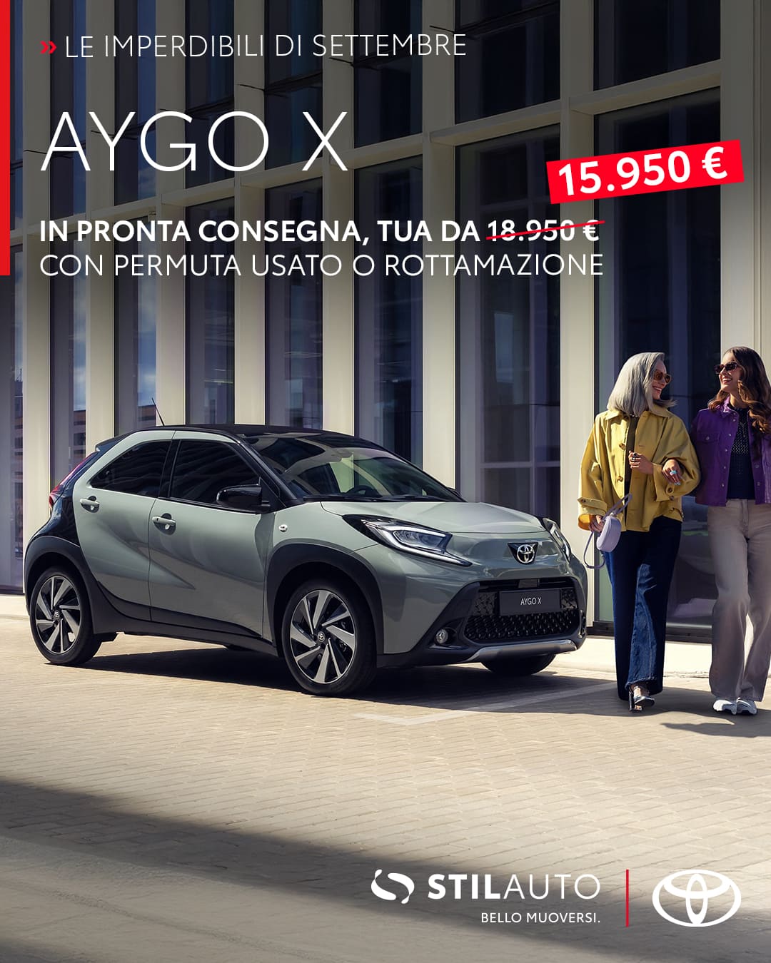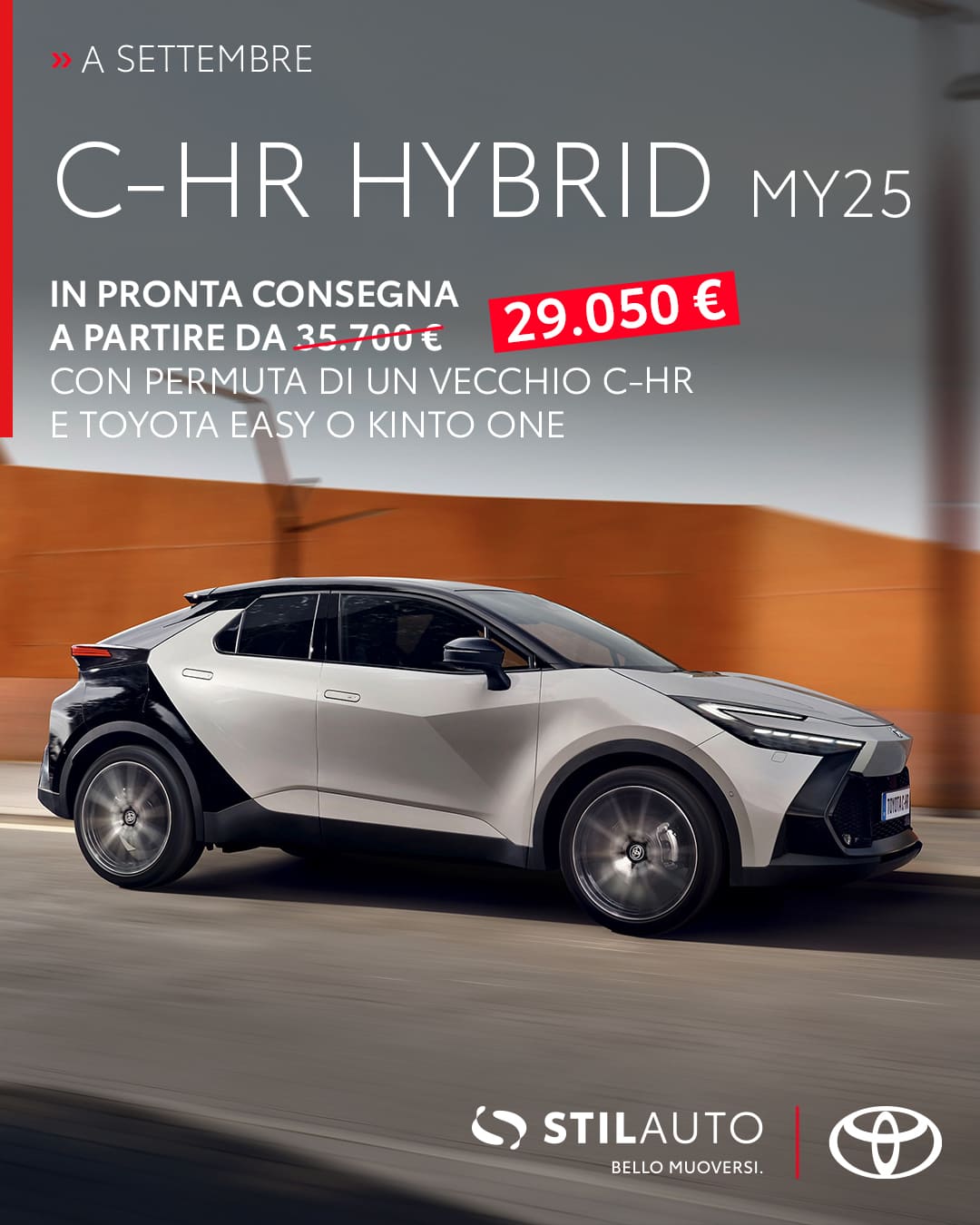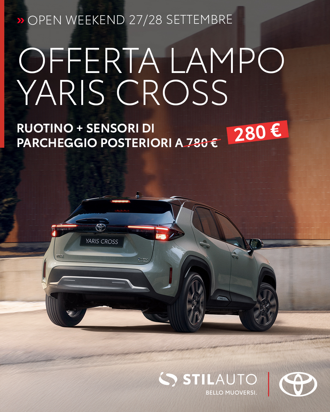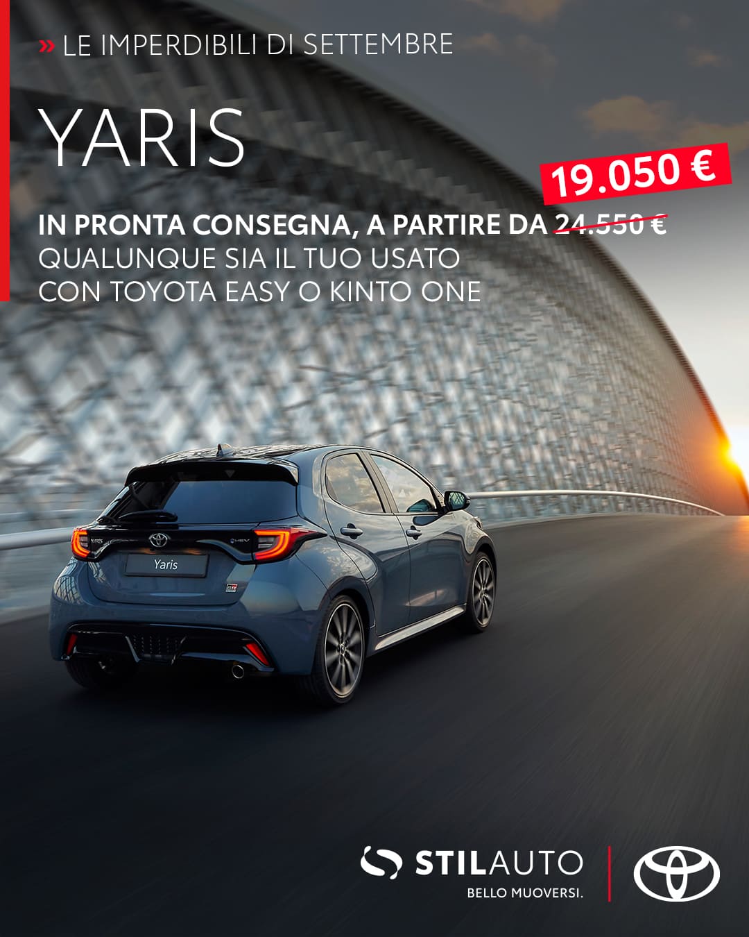 Solo da Stilauto, il 27/28 settembre su tutta la Gamma Toyota hai un VOUCHER DI 500 € spendibile a tua scelta. E questa super promozione si somma a tutte le altre offerte di settembre! Qualche esempio? Dai un'occhiata qui sotto.