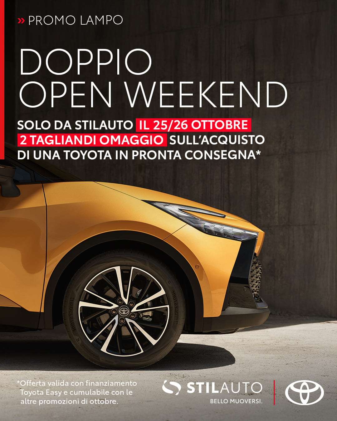 Solo da Stilauto, sabato 25 e domenica 26 OTTOBRE hai 2 TAGLIANDI OMAGGIO su tutta la Gamma Toyota in pronta consegna!